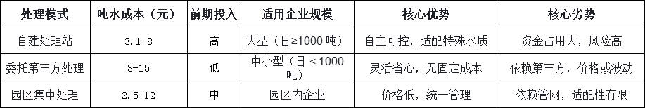 污水處理模式主要分為自建處理站、委托第三方處理、園區(qū)集中處理三類,不同模式的成本結(jié)構(gòu)、適用場景差異顯著,選擇時(shí)需結(jié)合自身需求綜合評估。