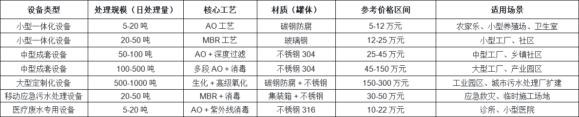 二、2025 年污水處理設備最新價格參考范圍
