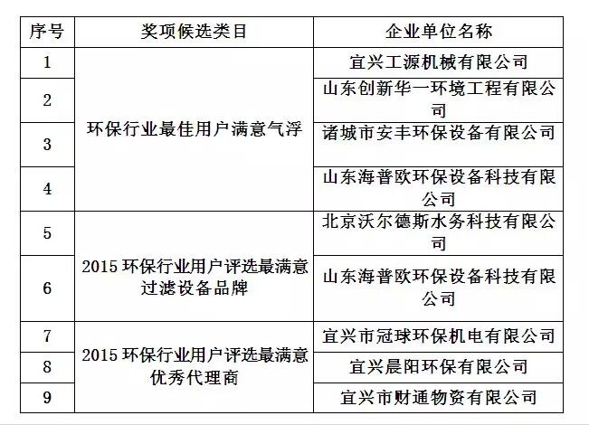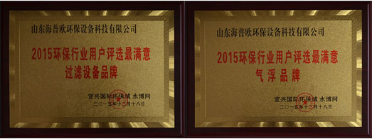 山東海普歐環保設備科技有限公司是中國環保產業協會會員單位,專業從事環保產品及技術開發,電力工程設計,環保工程、環保設施營運及技術服務等業務。受主辦方邀請參與了此次評選活動,憑借良好的市場信譽和客戶的高度好評,及在行業內的影響力,拿下2015環保行業用戶評選最滿意氣浮品牌和2015環保行業用戶評選最滿意過濾設備品牌兩項大獎,可謂實至名歸。